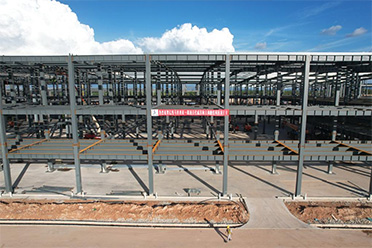 马来西亚亿纬一期项目化成车间主体钢结构封顶现场